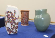 昨年度に引き続き、今年度も第3回京都やきもの倶楽部作品展が開催されました。会期中は全日好天に恵まれたこともあって、多数の方々にご来場いただき、盛会のうちに終えることが出来ました。 今回の作品展は清水焼団地の一角にある高齢者総合福祉住宅「きよみず苑・京都東」の一部スペースをお借りし、開催いたしました。期間中は、清水焼団地一帯で毎年恒例となっている大陶器市「清水焼の郷まつり」も開催され、多くの人出で賑わいました。作品展には、会員26名、賛助出品者7名のご参加を頂き、出品総数は33点でした。その内会員作品26点の中から秀作6点に、京都・やきもの倶楽部会長賞、副会長賞、奨励賞(2)、清水焼の郷賞(2)が授与されました。受賞者には賞状が授与され、特に会長賞ではトロフィーに加えて、副賞として陶器の置物が贈られました。 会期最終日には倶楽部理事5名の方々による出品作品への講評会が行われました。講評会では、まずその場に出席した作者から制作意図や制作方法などの説明があった後、各作品について忌憚のない講評とともに、これからの作品作りへの丁寧な助言がなされました。 賛助出品・受賞作品については → ギャラリー 「第3回京都・やきもの倶楽部作品展 賛助作品・受賞作品」 に掲載 |